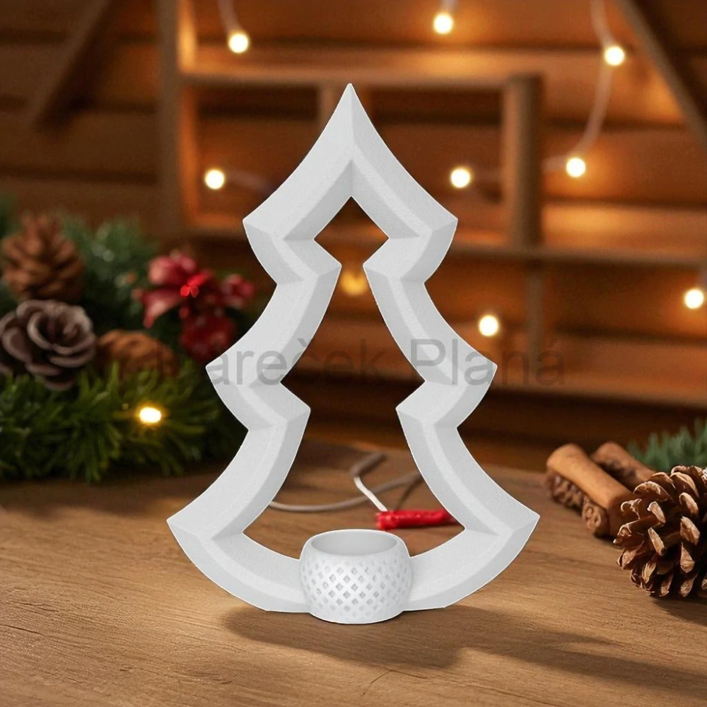 Originální svícen ve tvaru vánočního stromečku vyrobený pomocí 3D tisku z kvalitního PLA materiálu 🌿