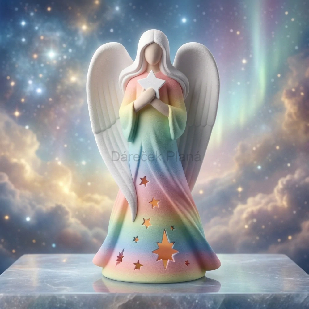 Elegantní andělka s jemnými křídly a svítícími hvězdičkami symbolizuje klid, lásku a ochranu 💫