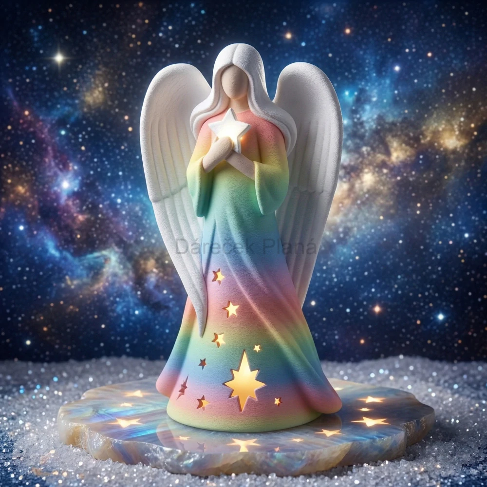 Elegantní andělka s jemnými křídly a svítícími hvězdičkami symbolizuje klid, lásku a ochranu 💫