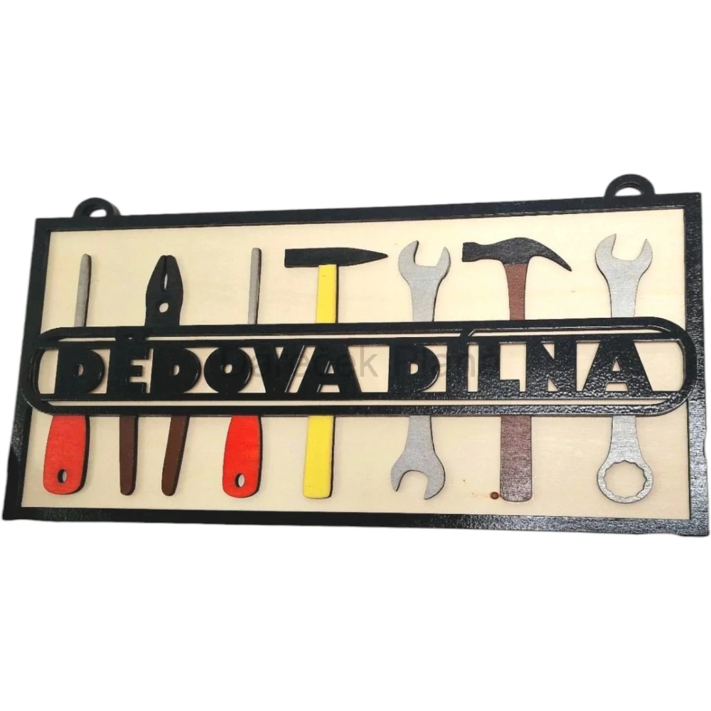 Vyrobeno z pevné překližky (2× 3 mm), ručně barvené, rozměr 40 × 20 cm. Krásný doplněk do dílny, garáže nebo na chalupu! 🪵🏡