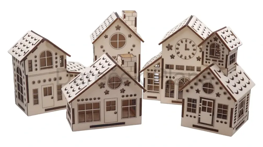 Tento set pěti kouzelných dřevěných domečků je ideální volbou pro každou domácnost, která touží po útulné a stylové dekoraci. Domečky o výšce 9-13 cm jsou vyrobeny z kvalitní překližky o síle 3 mm a snadno se dají osvítit elektrickou svíčkou, která je součástí balení. Díky jejich jednoduchému, ale elegantnímu designu jsou perfektní pro celoroční výzdobu, od vánočního období až po letní večery. Nejsou však vhodné pro klasické svíčky, aby nedošlo k poškození dřeva.