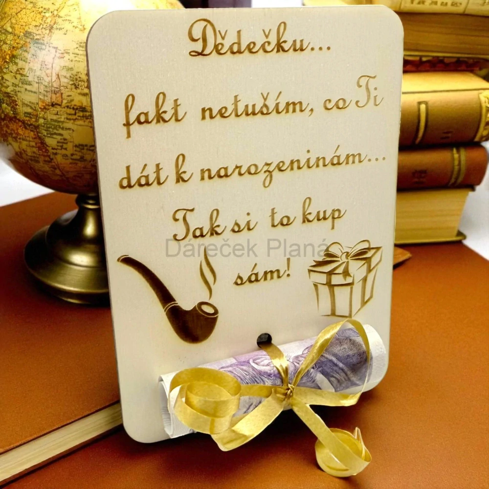 Dřevěná karta na peníze – Dědečkovi k narozeninám