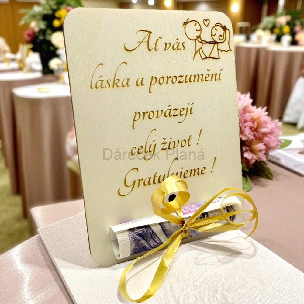 Dřevěná karta na peníze – Svatební přání s gravírováním