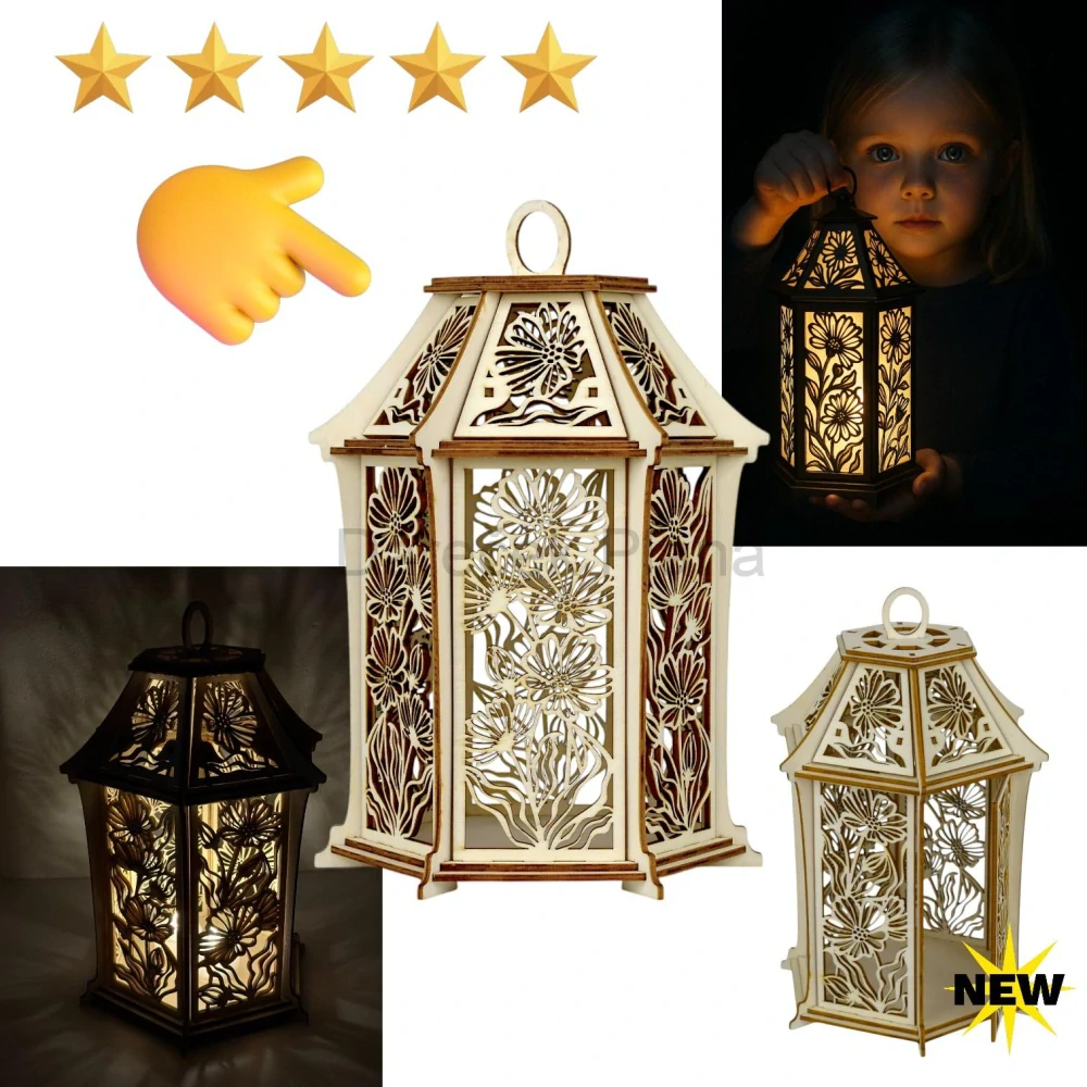 ✨ Designová dřevěná lucerna z překližky s nádherným květinovým motivem. Ručně skládaná s důrazem na detail, přinese kouzelnou atmosféru do každého interiéru.