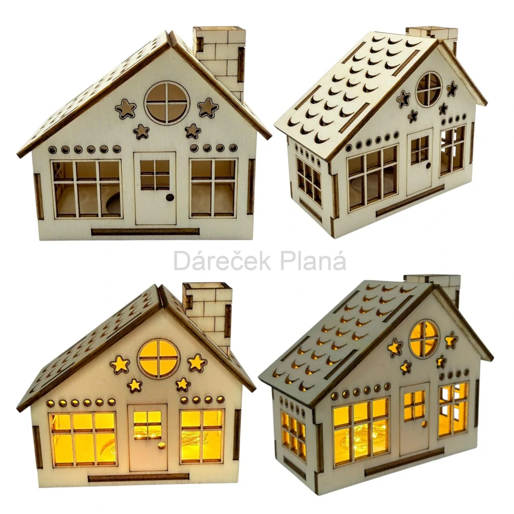 ⭐ Roztomilá dekorace pro váš domov! Tento malý domeček s komínkem a třemi hvězdičkami nad dveřmi je vyroben z kvalitní překližky a vyřezán laserovou technologií, která zaručuje dokonalou přesnost a jemné detaily.