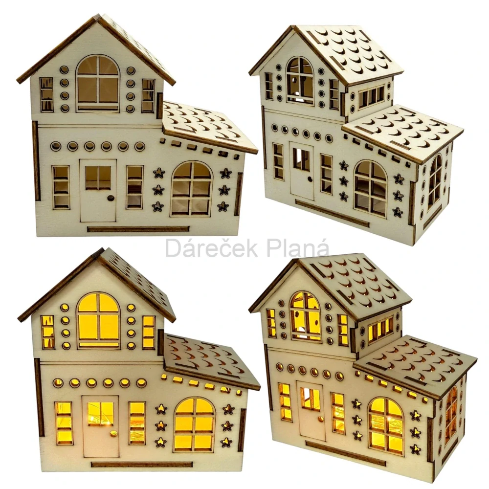 Dřevěný domeček s patrem + LED svíčka – 11×11×6 cmSkladem 48 ks99 Kč/ ks