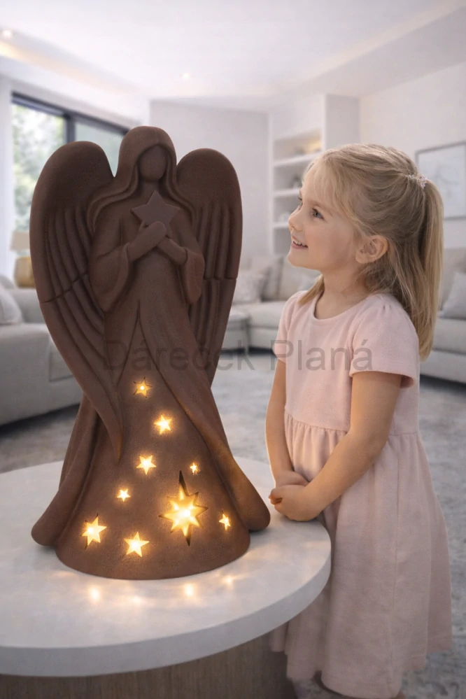 Andělka se díky jemnému světlu stává večer nádherným světelným prvkem, který působí klidně, elegantně a luxusně ✨