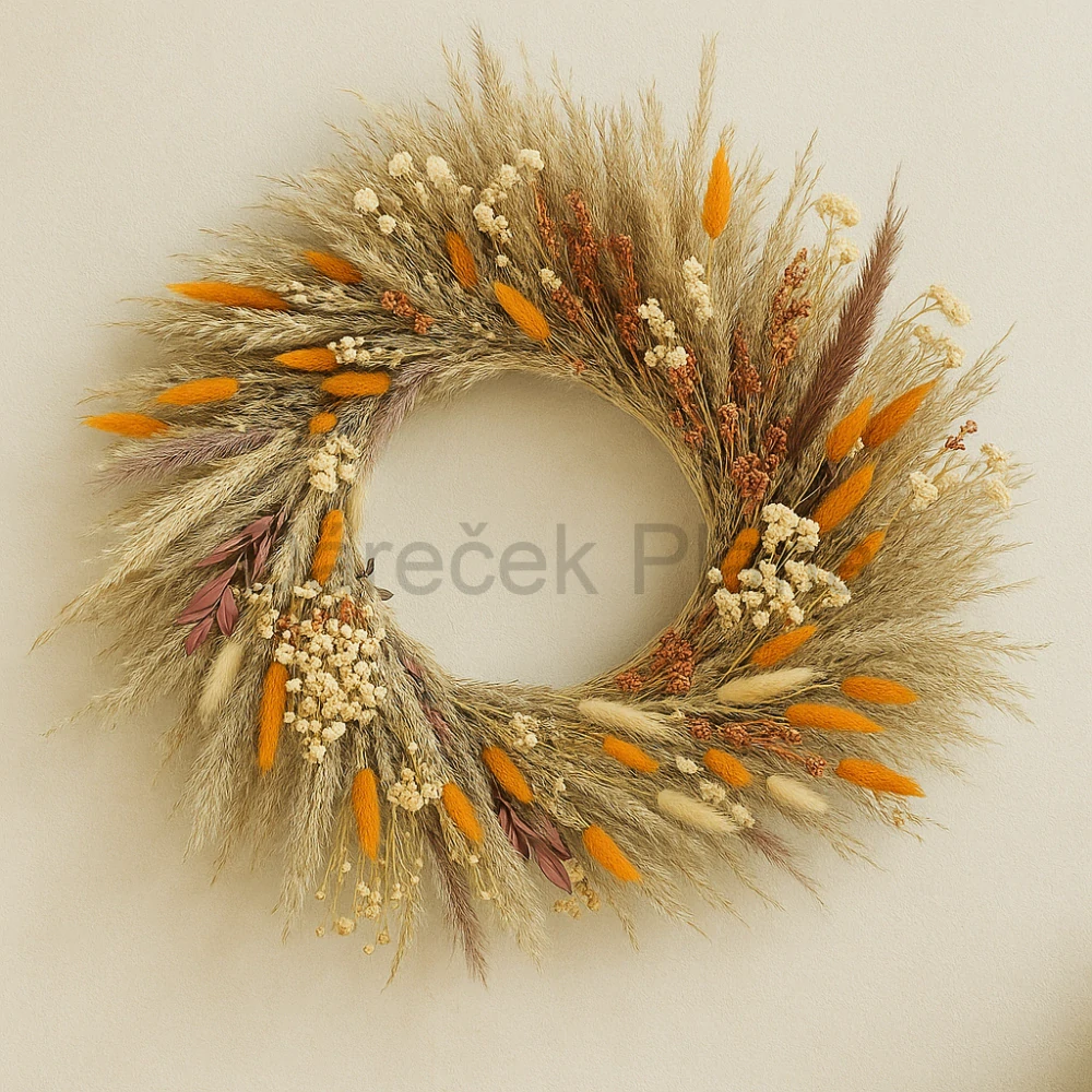 🖐️ Ručně vyráběný originál – každý věnec je jedinečný, uspořádání květů a travin se může jemně lišit ➝ váš kus bude vždy originál!