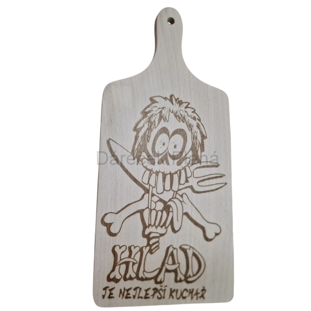 Toto originální dřevěné prkénko s vtipným nápisem „HLAD je nejlepší kuchař“ a veselým obličejem držícím příbor rozveselí každou kuchyni. Každý, kdo se na něj podívá, hned dostane chuť na něco dobrého! Kvalitní gravírování a pevné dřevo z něj dělají nejen stylový doplněk, ale i praktického pomocníka při přípravě jídel. Skvělý dárek pro všechny, kdo milují vaření, humor a dobrou chuť k jídlu. Přineste do své kuchyně špetku zábavy a dopřejte si radost.