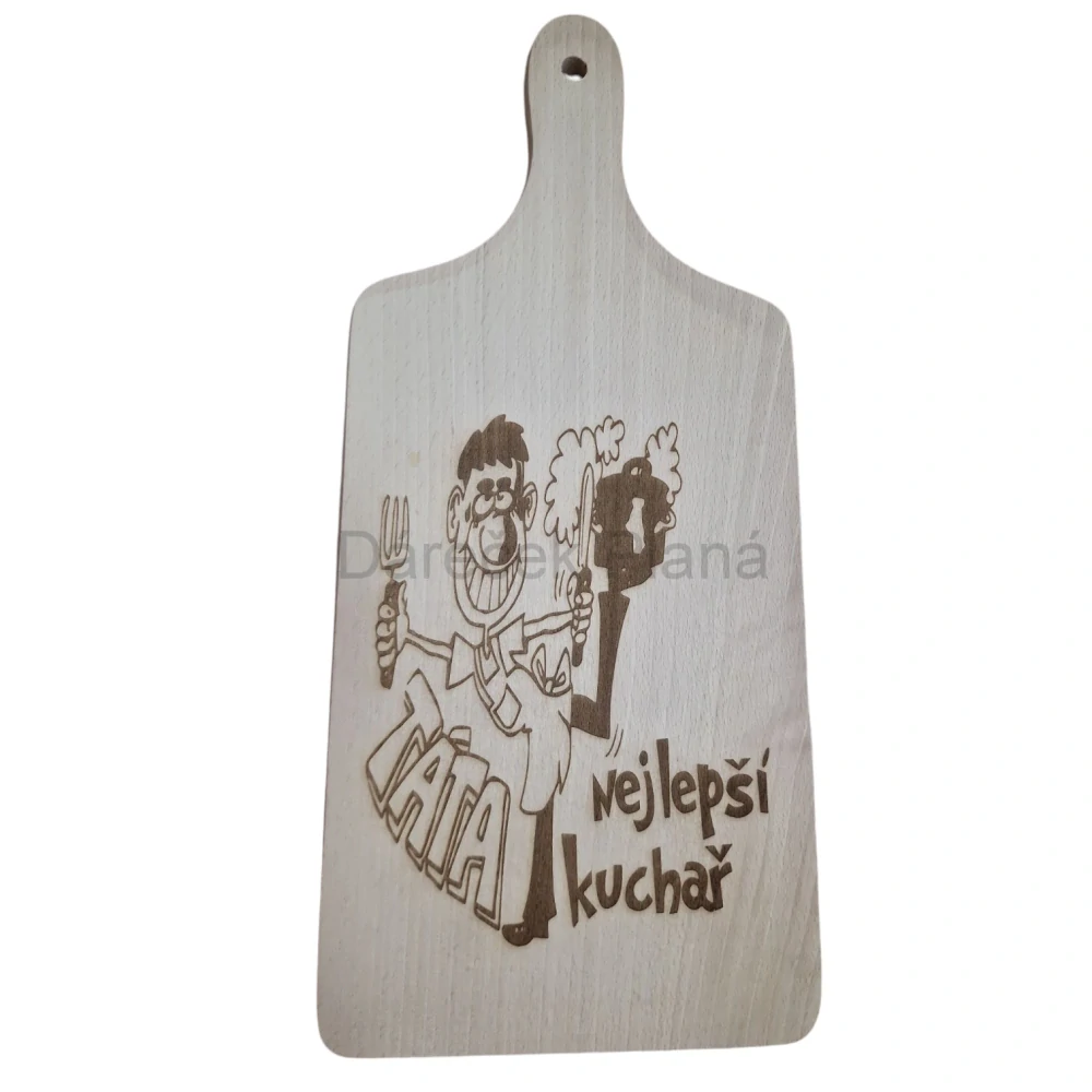 Chcete tátovi ukázat, že v kuchyni je opravdový šéf? Toto dřevěné prkénko s veselým kuchařem a nápisem „Táta je nejlepší kuchař“ mu vykouzlí úsměv na tváři vždy, když bude připravovat své vyhlášené dobroty. Precizní gravírování a kvalitní dřevo z něj dělají nejen praktického pomocníka, ale i krásný a osobitý dárek. Každé krájení a servírování s tímto prkénkem bude pro tátu ještě větší radostí. Udělejte mu radost tímto originálním dárkem a dejte mu najevo, že jeho kulinářské umění je nepřekonatelné!
