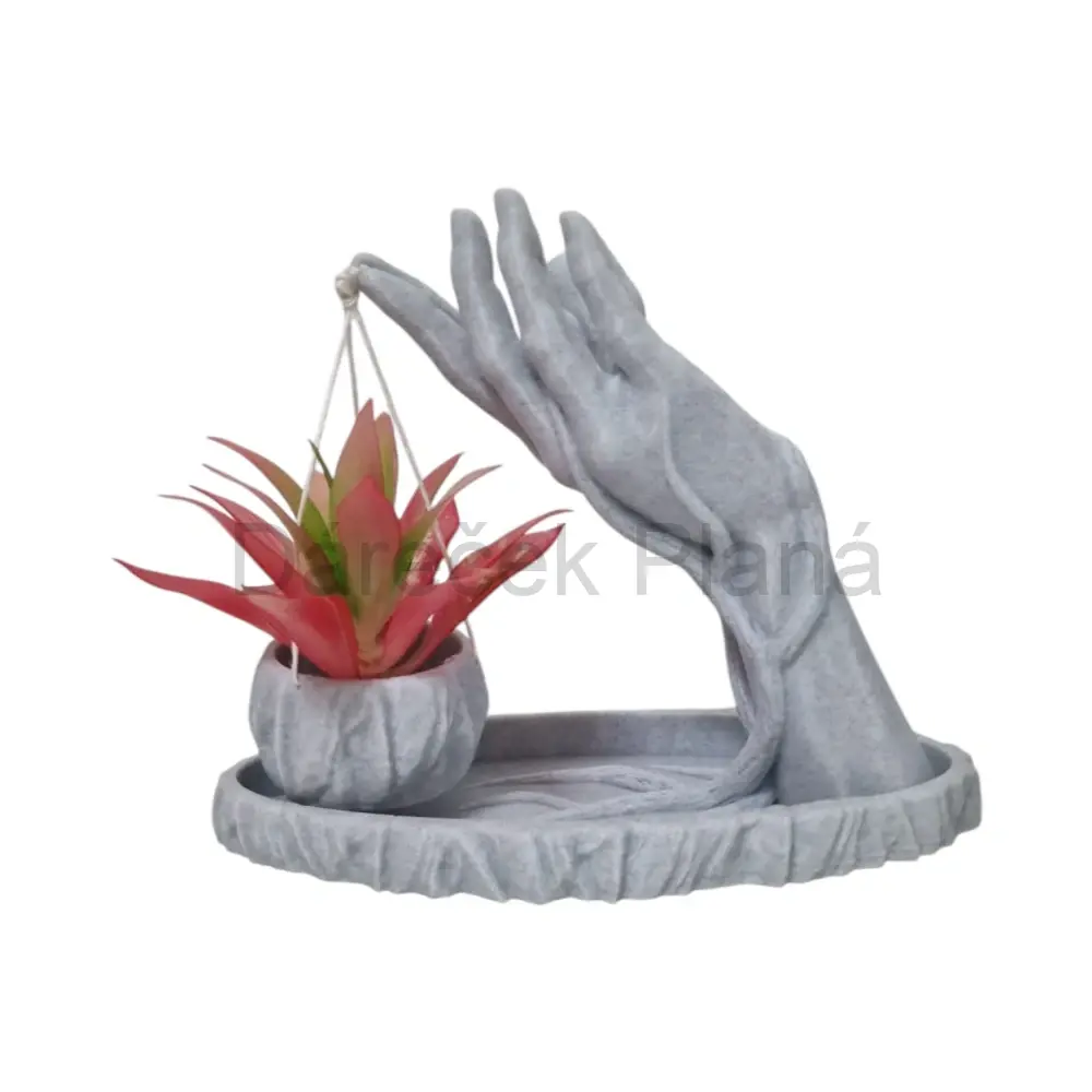 Tato originální dekorace ve tvaru ruky držící vázičku na prstu je vyrobena technologie 3D tisku. Vázička je ideální pro umělé nebo sušené květiny a zároveň může sloužit jako praktický prostor pro drobné předměty. Jedinečný design dodá vašemu interiéru styl a moderní vzhled. Dekorace je prodávána bez květin, což vám umožňuje přizpůsobit ji podle svého vkusu. Skvělý doplněk pro každou domácnost, který spojuje funkčnost s estetikou.