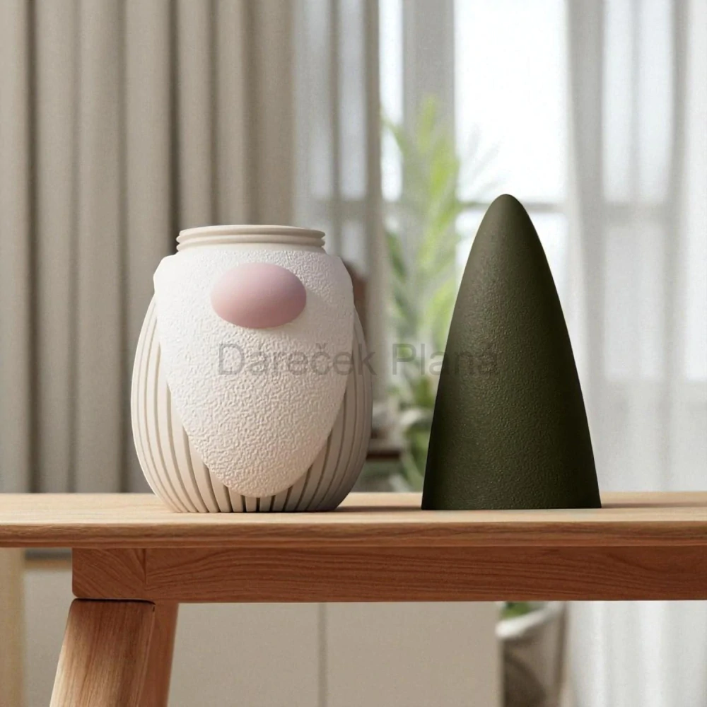 Moderní minimalistický design vyrobený pomocí 3D tisku z kvalitního PLA materiálu 🌿 — krásně působí na parapetu, komodě i u vánočního stromečku.