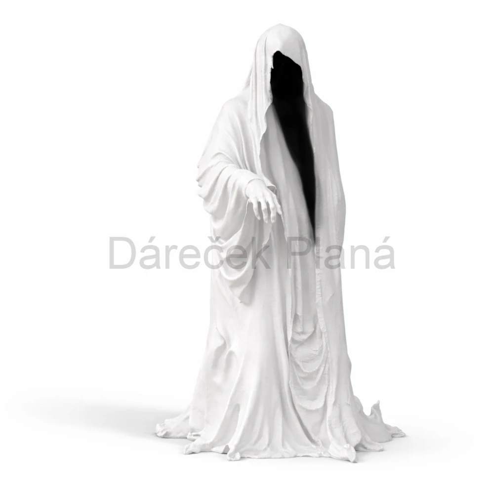 Postava zahalená v plášti působí klidně, mysticky a velmi elegantně, takže se hodí do moderních i stylových interiérů.