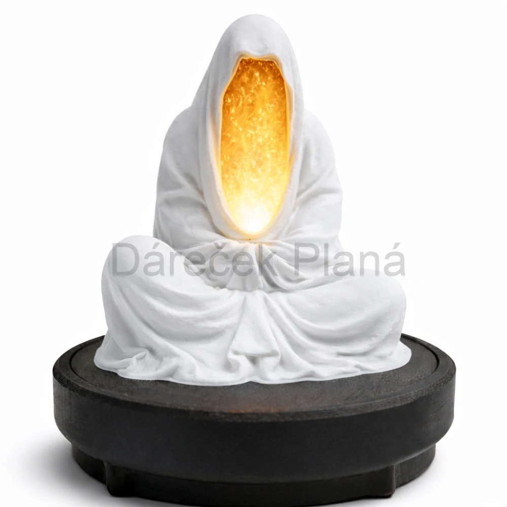 Tajemná postava zahalená v plášti ukrývá uvnitř prostor pro světlo, které vytváří teplý a uklidňující efekt.
