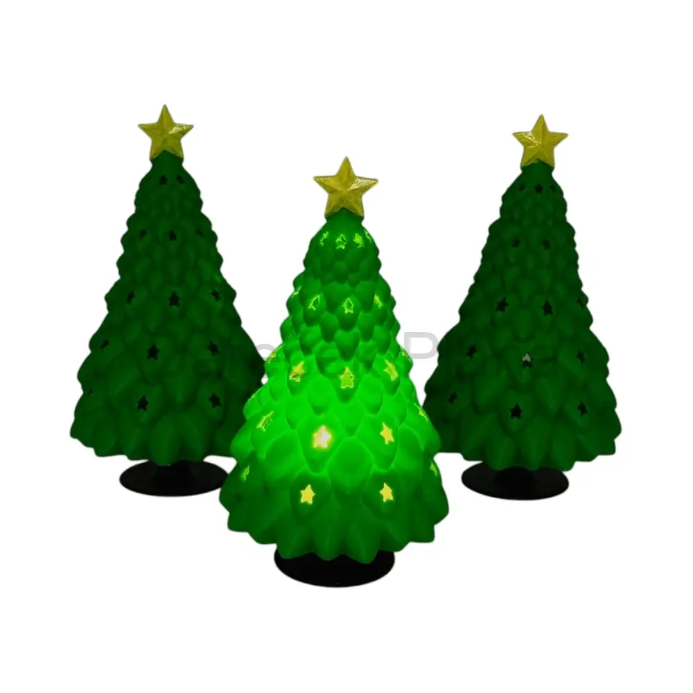 Funkce: stromeček má šroubovací podstavec, do kterého se vsadí elektrická svíčka — po zašroubování se celý stromeček jemně rozsvítí
