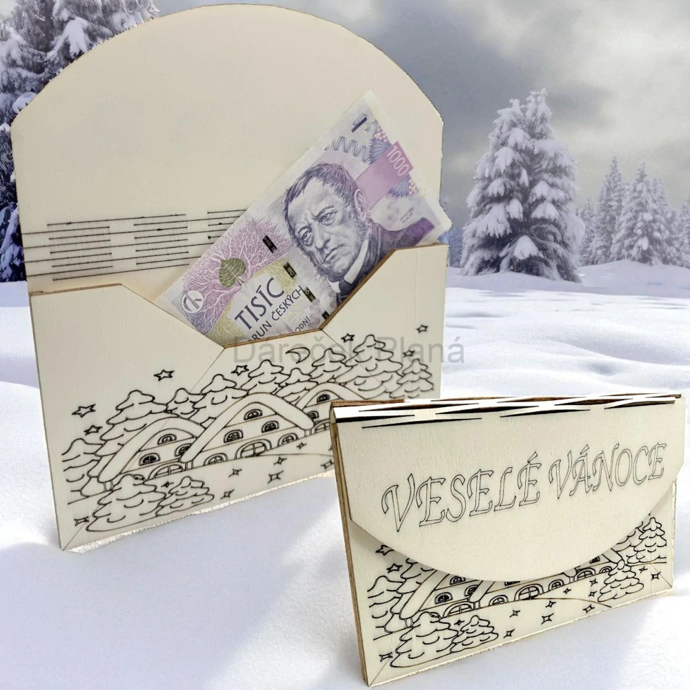 Vánoční obálka na peníze z dřeva – motiv Chaloupka v ziměSkladem 27 ks170 Kč/ ks
