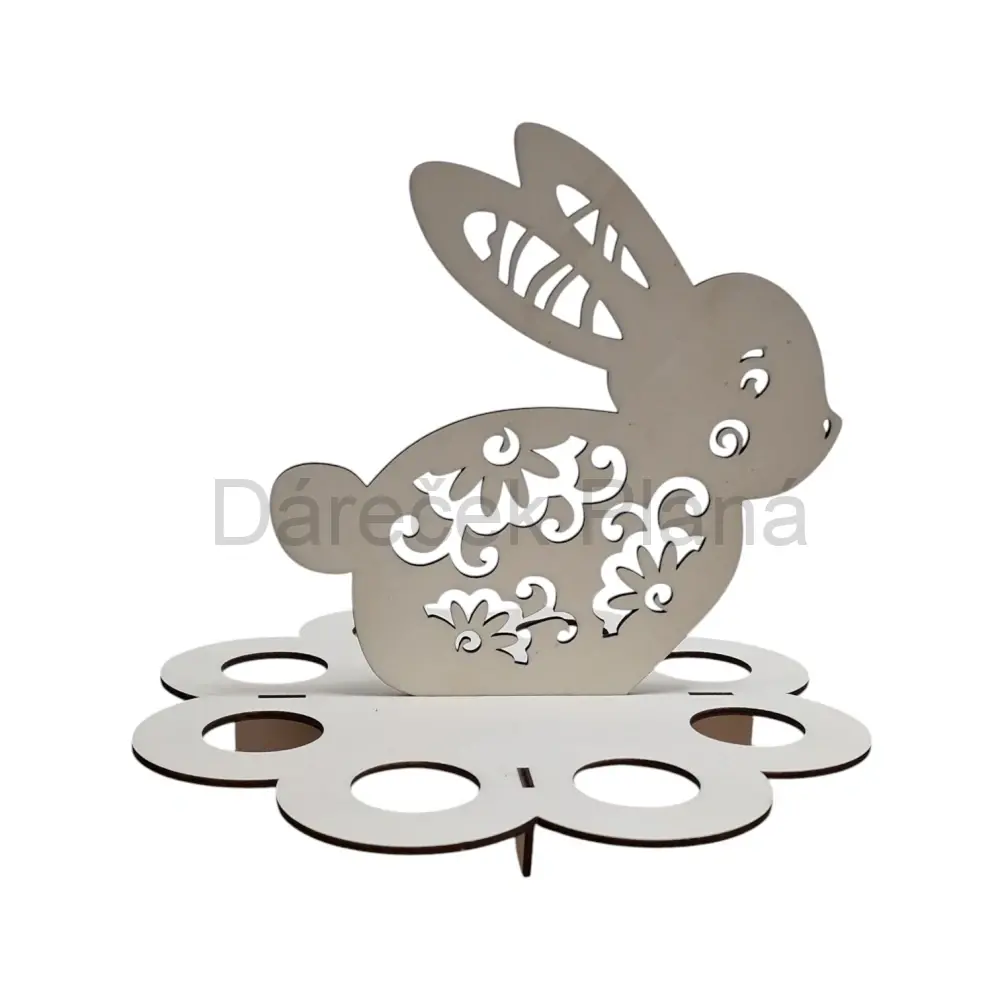 Tento krásný stojánek ve tvaru zajíčka je ideálním doplňkem pro velikonoční dekorace. Disponuje osmi otvory na vajíčka, což z něj činí praktický a zároveň stylový prvek na váš stůl. Je vyroben z kvalitní překližky, která zajišťuje jeho pevnost a stabilitu. Jemné detaily na těle zajíčka dodávají produkt elegantní a slavnostní vzhled. Perfektní volba pro vytvoření příjemné velikonoční atmosféry ve vašem domově.